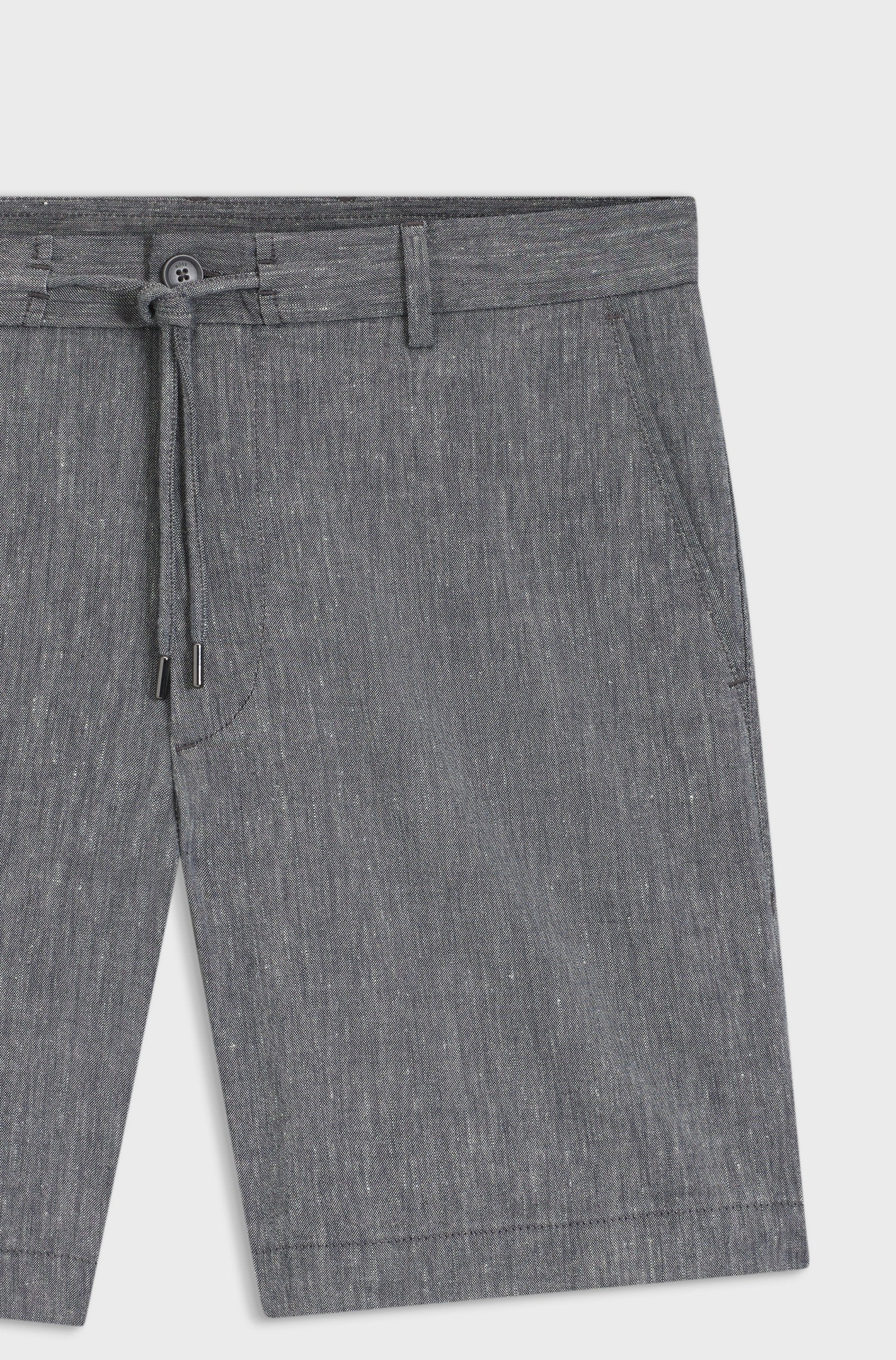 Ajusta el corte recto de estos shorts BOSS Menswear con el cordón ajustable en la cintura. Confeccionados en una veraniega mezcla de lino mouliné con elasticidad para mayor comodidad.