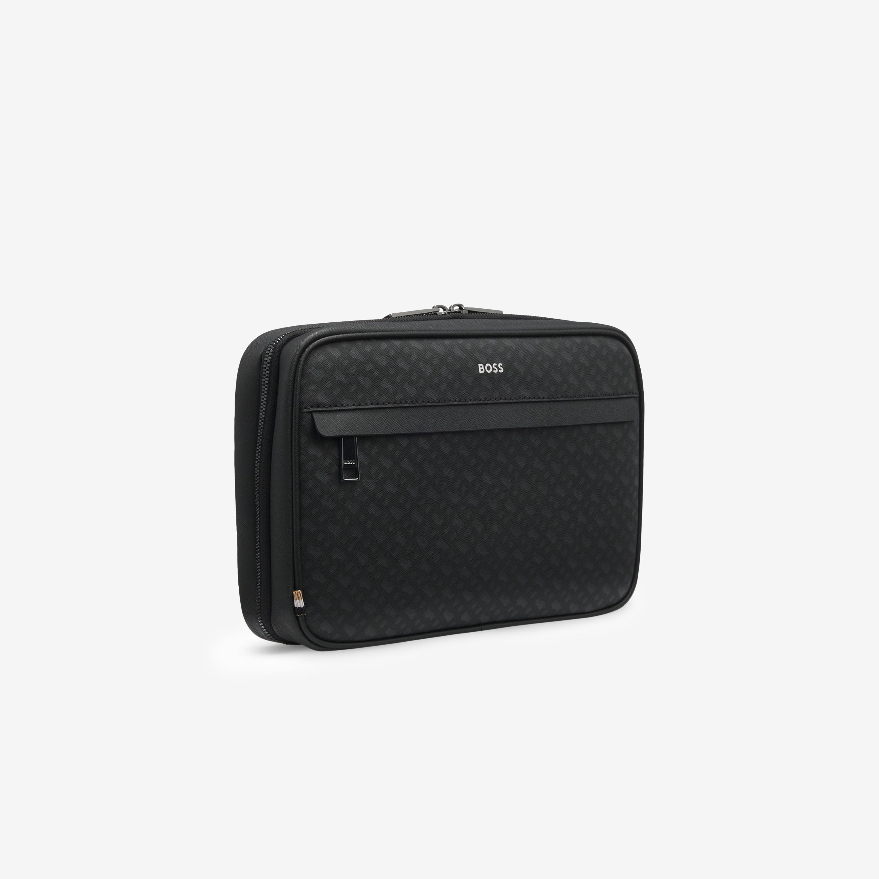 Prepárate para tus viajes con este neceser de BOSS Menswear. Fabricado en sarga de nailon suave. Ribete pulido con el monograma Doble B. Práctica asa de transporte. Medidas: 22 x 12 x 11,5 cm. Este producto contiene al menos un 60 % de materias primas de mejor calidad. Está fabricado parcialmente con poliéster reciclado. En HUGO BOSS, preferimos el poliéster reciclado procedente de residuos textiles preconsumo y posconsumo y nos esforzamos por eliminar progresivamente el poliéster de las botellas de PET.