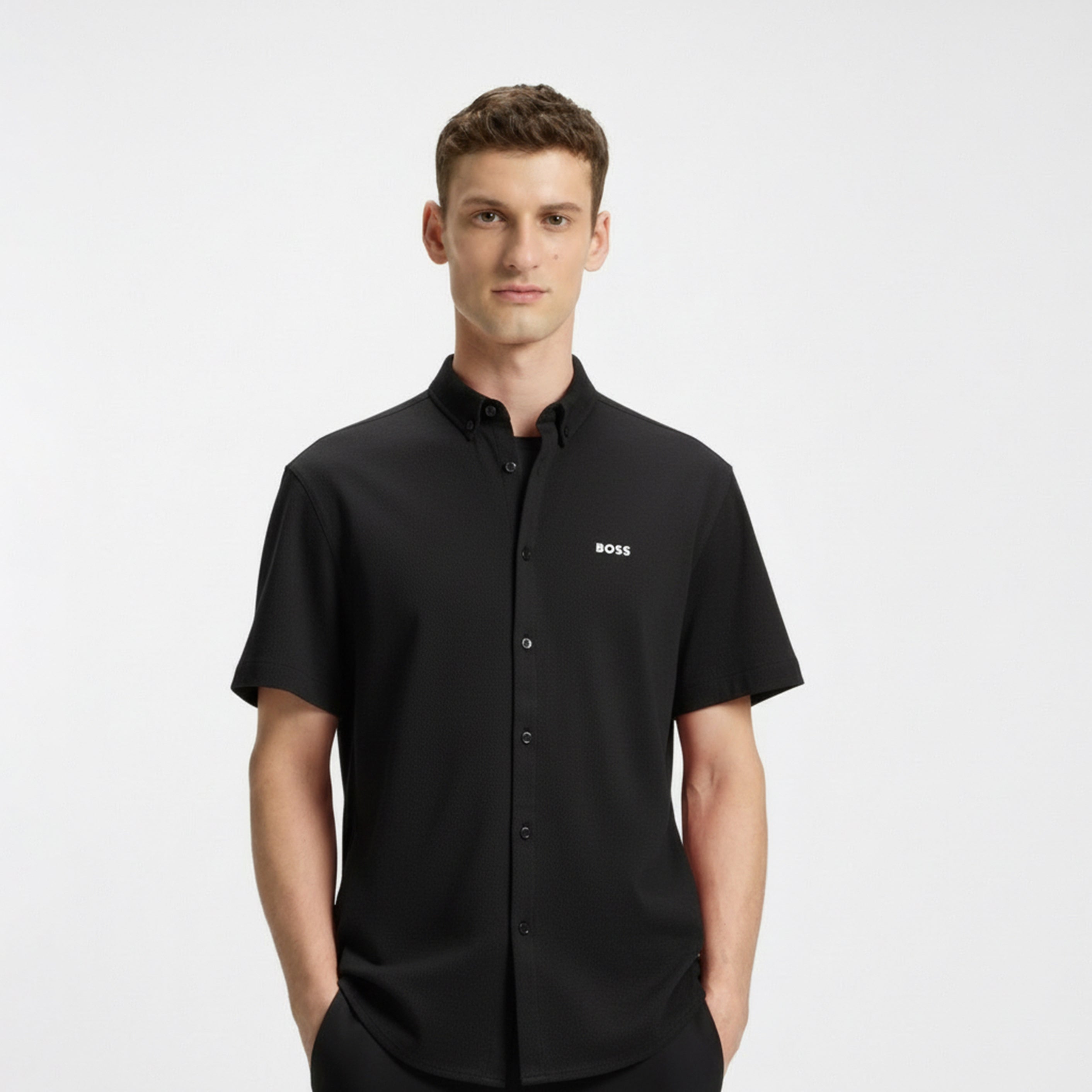 En suave jersey de algodón con elasticidad en cuatro direcciones, esta camisa BOSS Menswear es resistente a las arrugas y ofrece un estilo impecable. Logotipo bordado. Corte regular holgado.