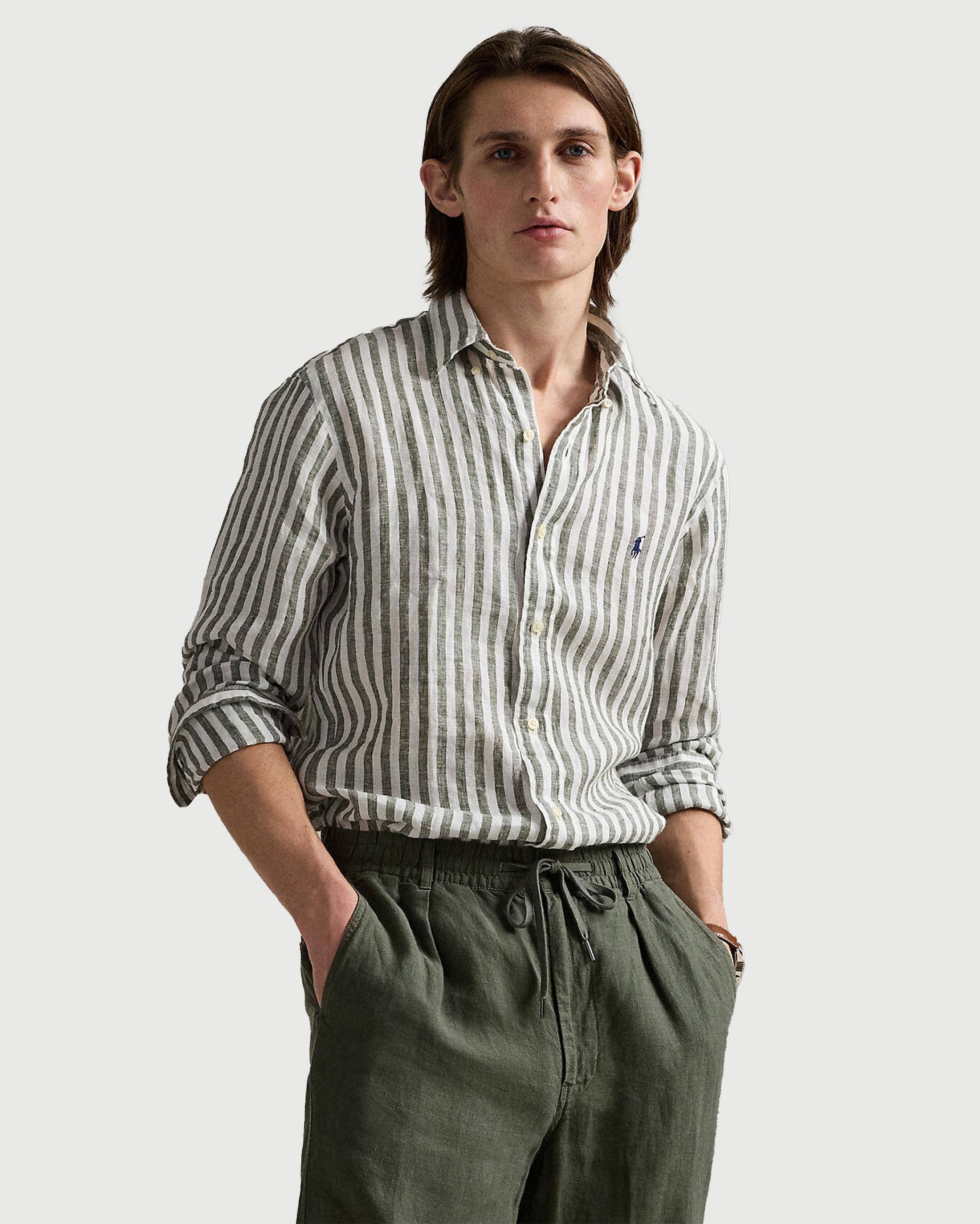 Camisa en Lino de Rayas POLO Ralph Lauren Manga Larga Custom Fit