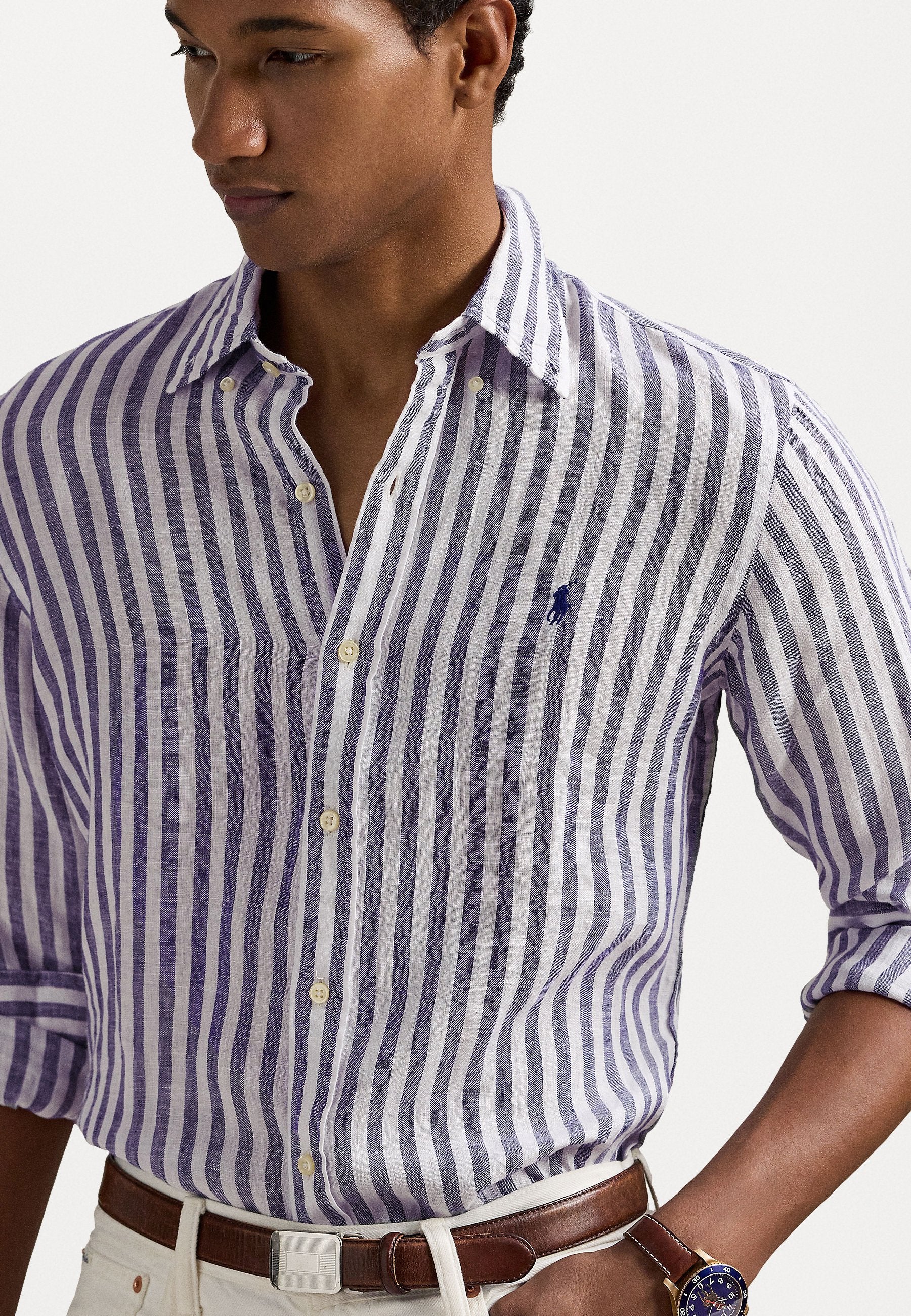 Camisa En Lino de Rayas POLO Ralph Lauren Manga Larga Custom Fit