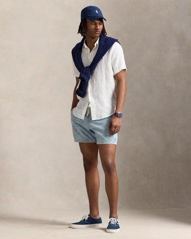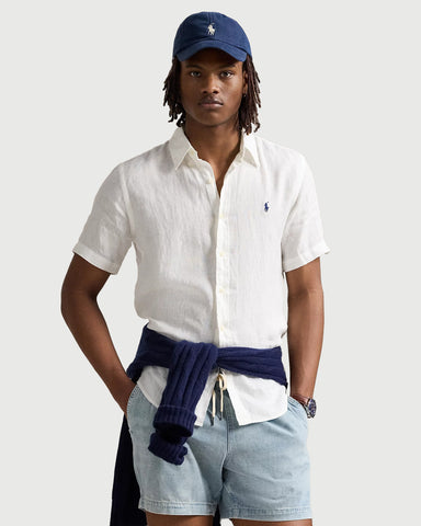 Esta camisa de manga corta está confeccionada en lino ultraligero y bordada con nuestro Pony característico en el pecho.