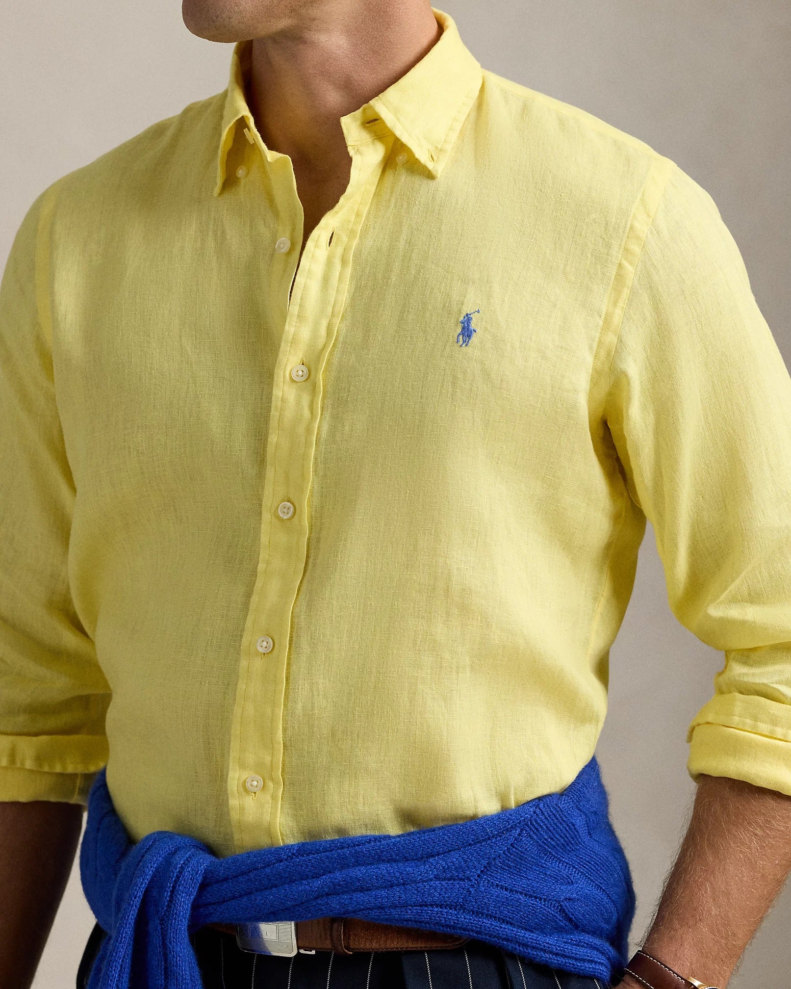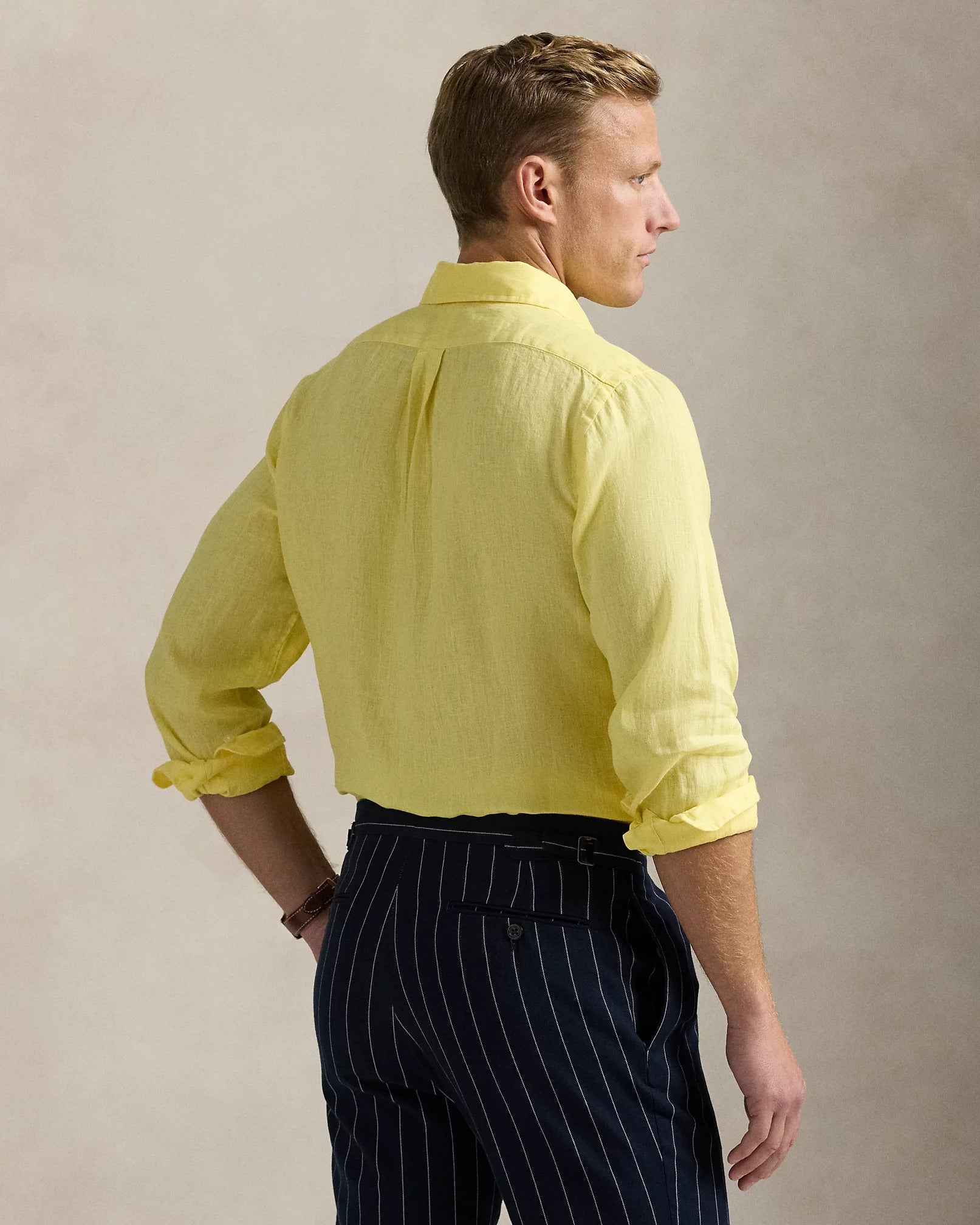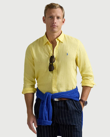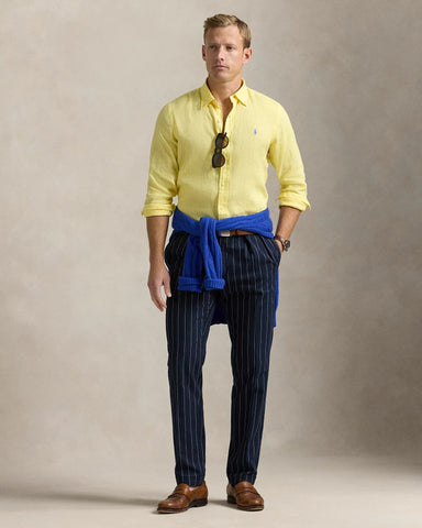 El lino ligero y transpirable hace que esta camisa sea perfecta para los días de clima cálido.