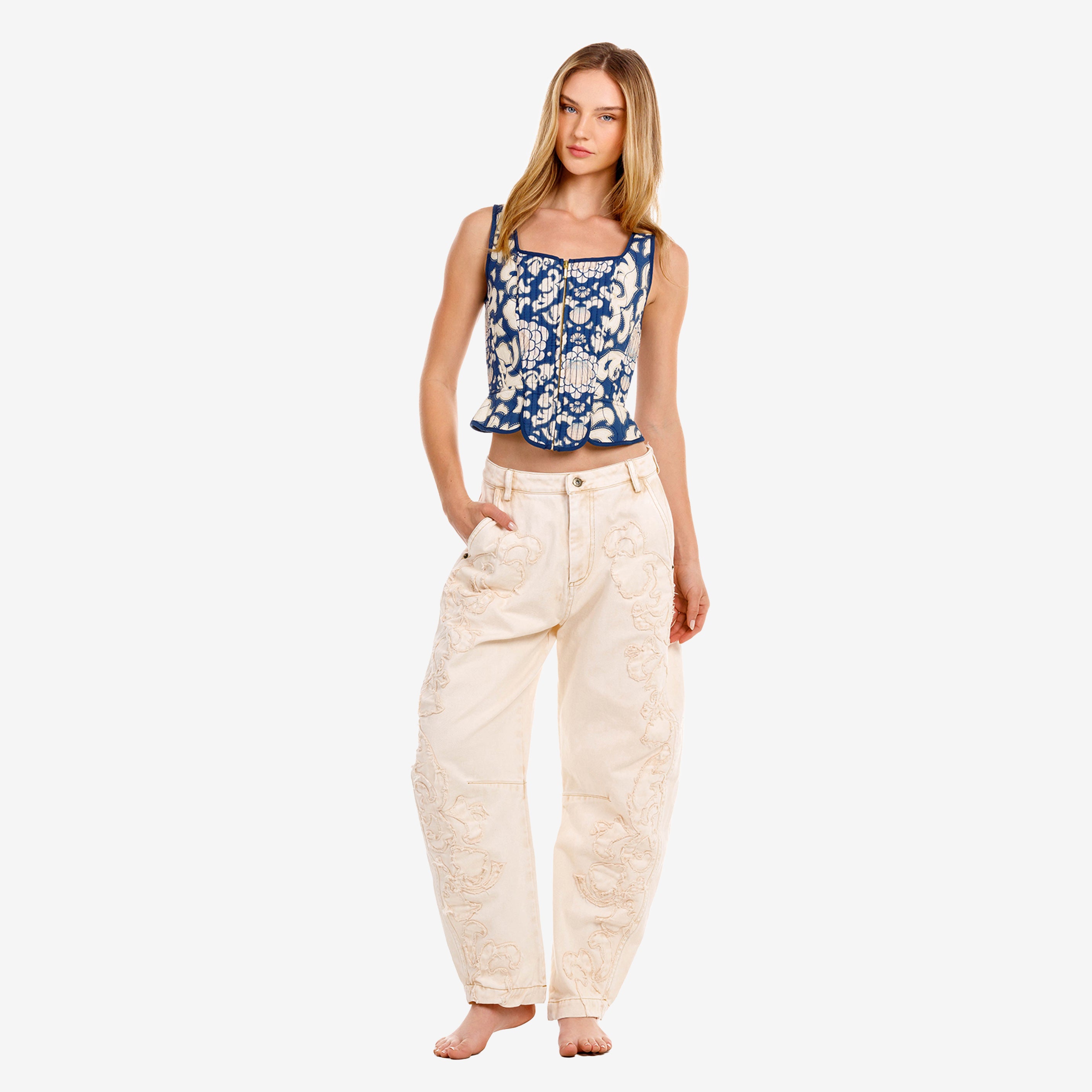El top corto Sinclair combina estructura y estilo. Con un corpiño ajustado, intrincados detalles acolchados y una elegante cremallera frontal, está diseñado para destacar. Su corte corto le da un toque fresco y moderno, perfecto para combinar con braguitas de cintura alta o con un bralette para un look atrevido.
