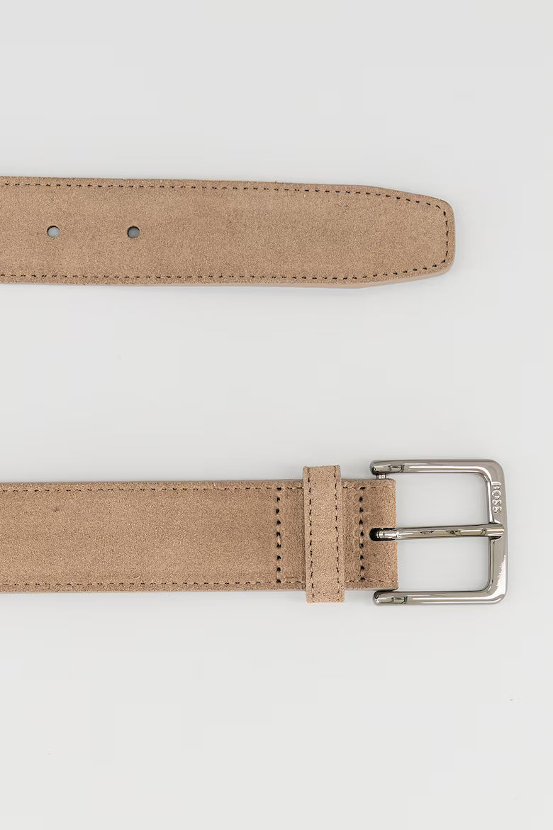Con su suave ante y su hebilla pulida, este cinturón BOSS Menswear de 3,5 cm de ancho añade un toque de encanto italiano a tu look. Herrajes con el logotipo grabado. Para un ajuste óptimo, recomendamos pedir un cinturón una talla más grande que tu cintura.
