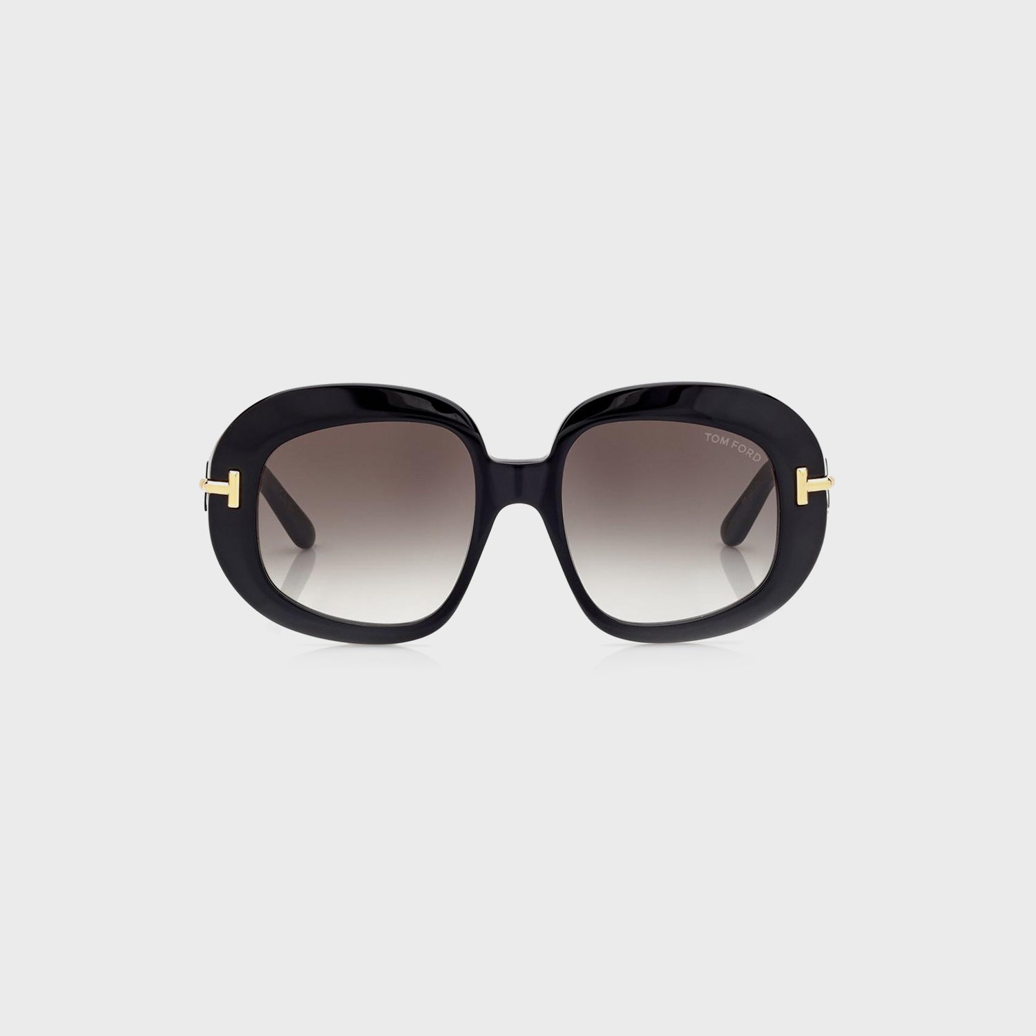 Estilo de acetato brillante. Logotipo T tridimensional en las varillas. Placa interior de la varilla con el logotipo de Tom Ford.