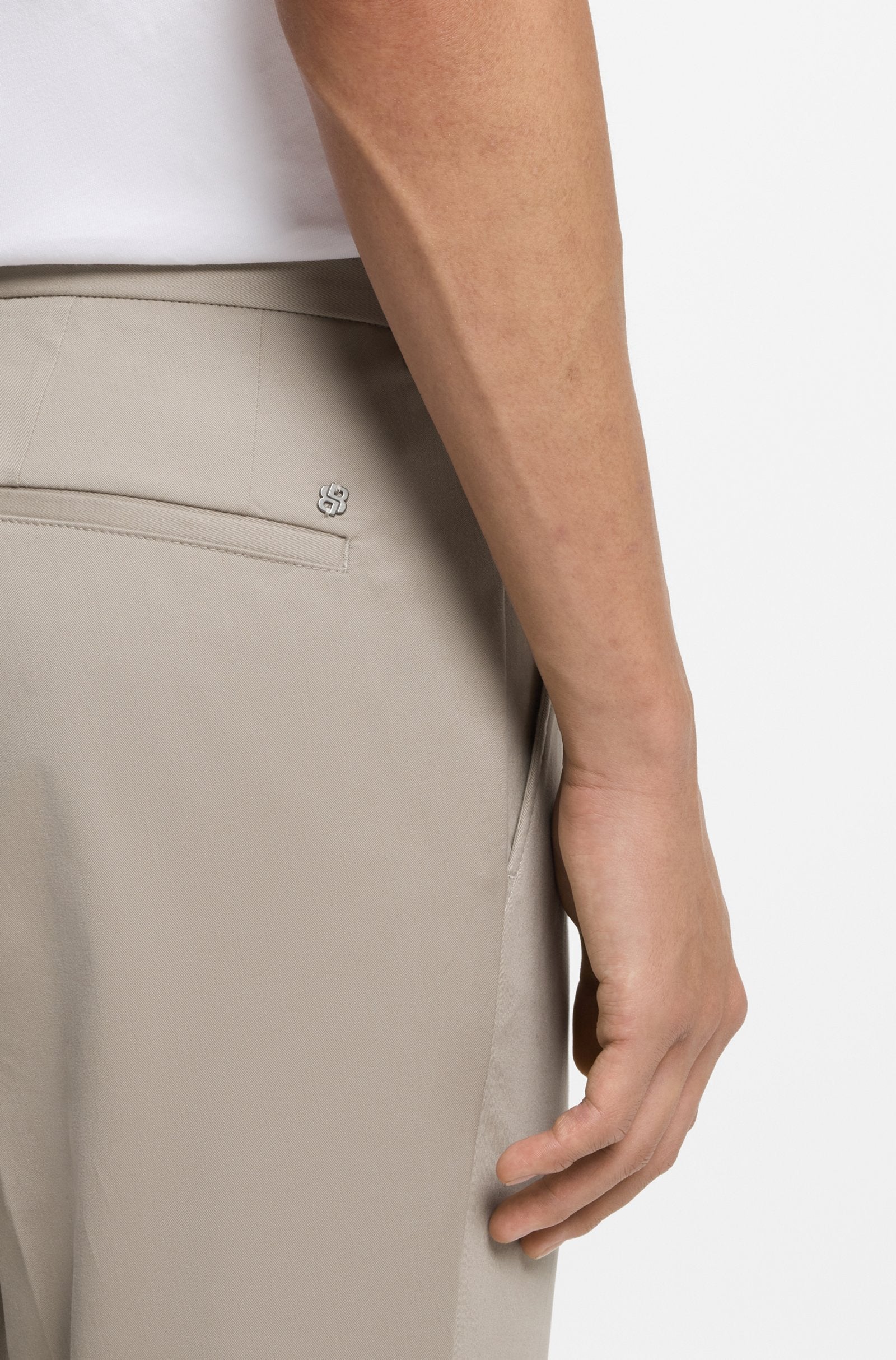 Confeccionados en algodón elástico lavable para un fácil cuidado, estos pantalones BOSS Menswear son una prenda básica versátil. Corte moderno y ajustado. Bajo vuelto.