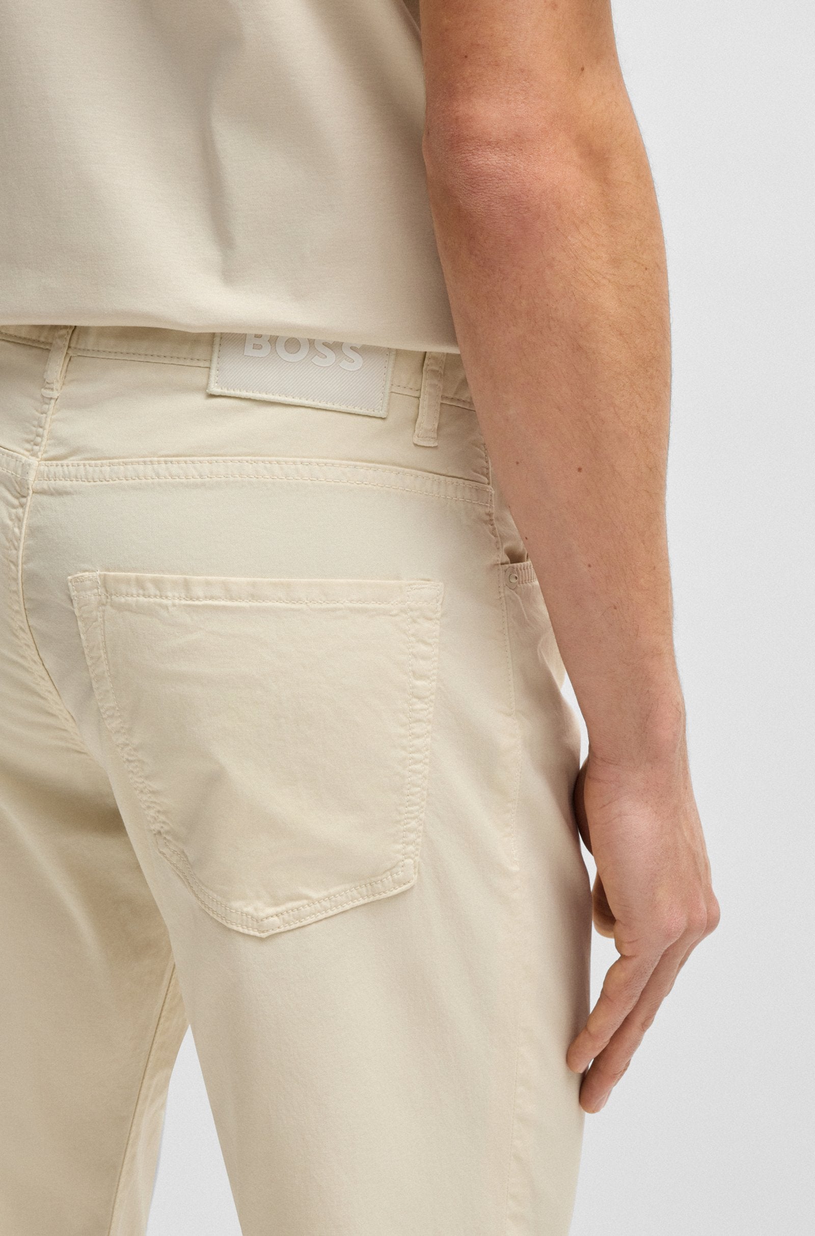 Ideales para crear looks de verano, estos pantalones BOSS Menswear presentan un corte recto informal. Su sarga transpirable es elástica para mayor libertad de movimiento. Este producto está confeccionado parcialmente con algodón orgánico. Nuestros estándares orgánicos no permiten el uso de fertilizantes sintéticos, pesticidas ni semillas modificadas genéticamente.