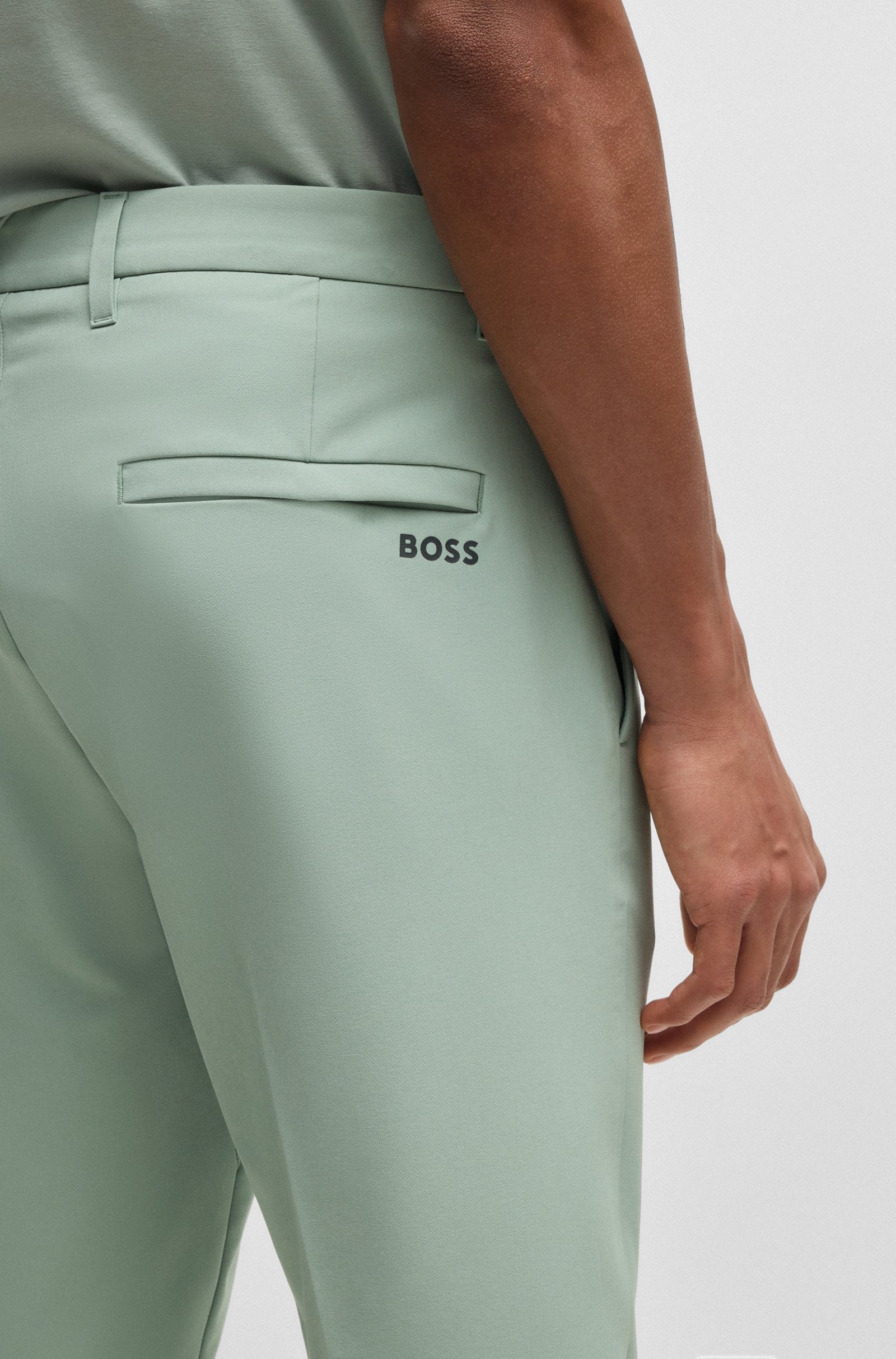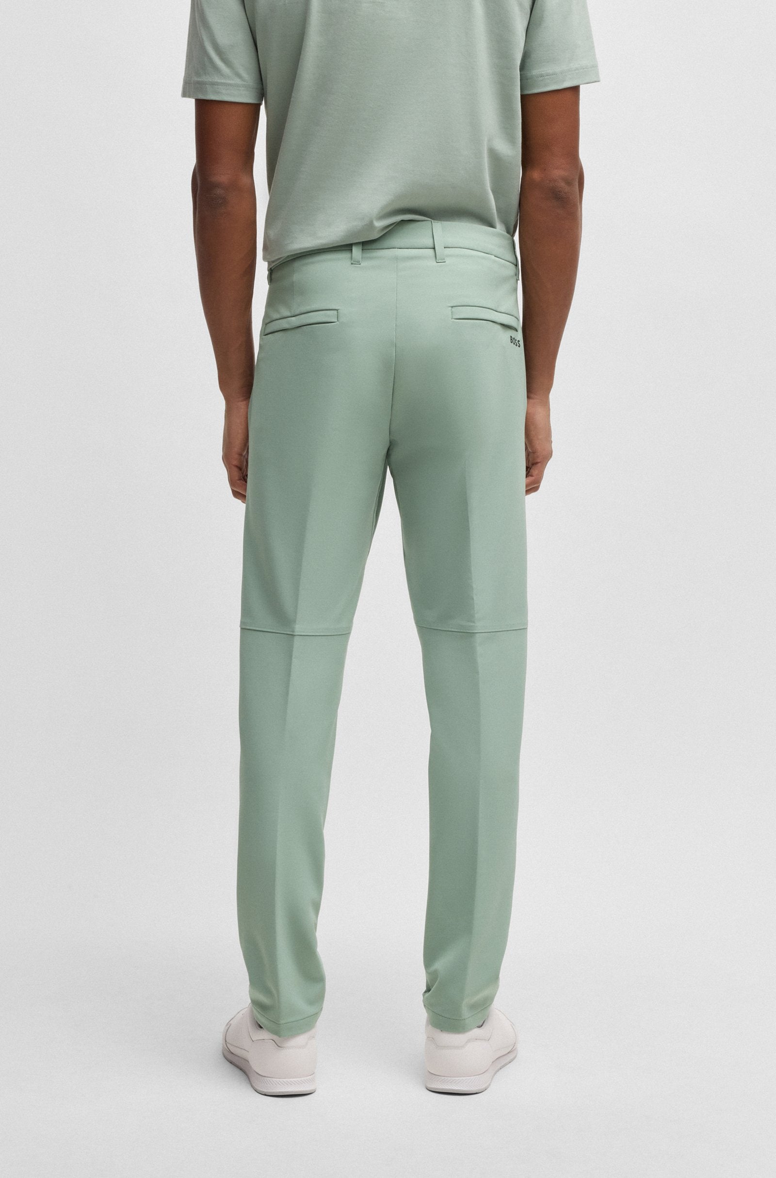Perfectos para viajar o hacer deporte, estos pantalones BOSS Menswear de corte entallado se secan rápidamente, repelen el agua y son fáciles de planchar. Bolsillo integrado en el pecho. Cordones ocultos.