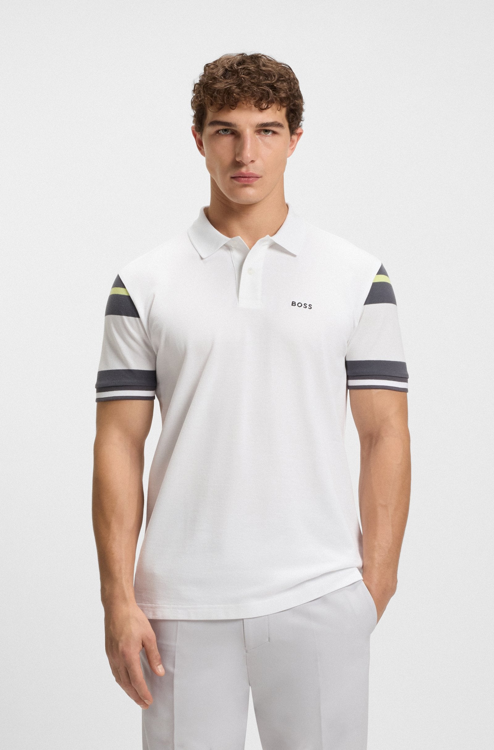 Polo BOSS con Rayas en Mangas en Piqué de Algodón Transpirable Regular Fit