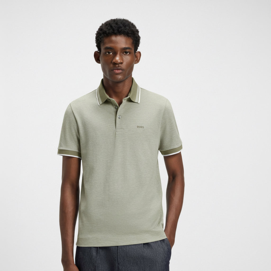 Con rayas a juego en el cuello, este polo de manga larga de BOSS Menswear es un clásico moderno. Corte regular en piqué de algodón transpirable.