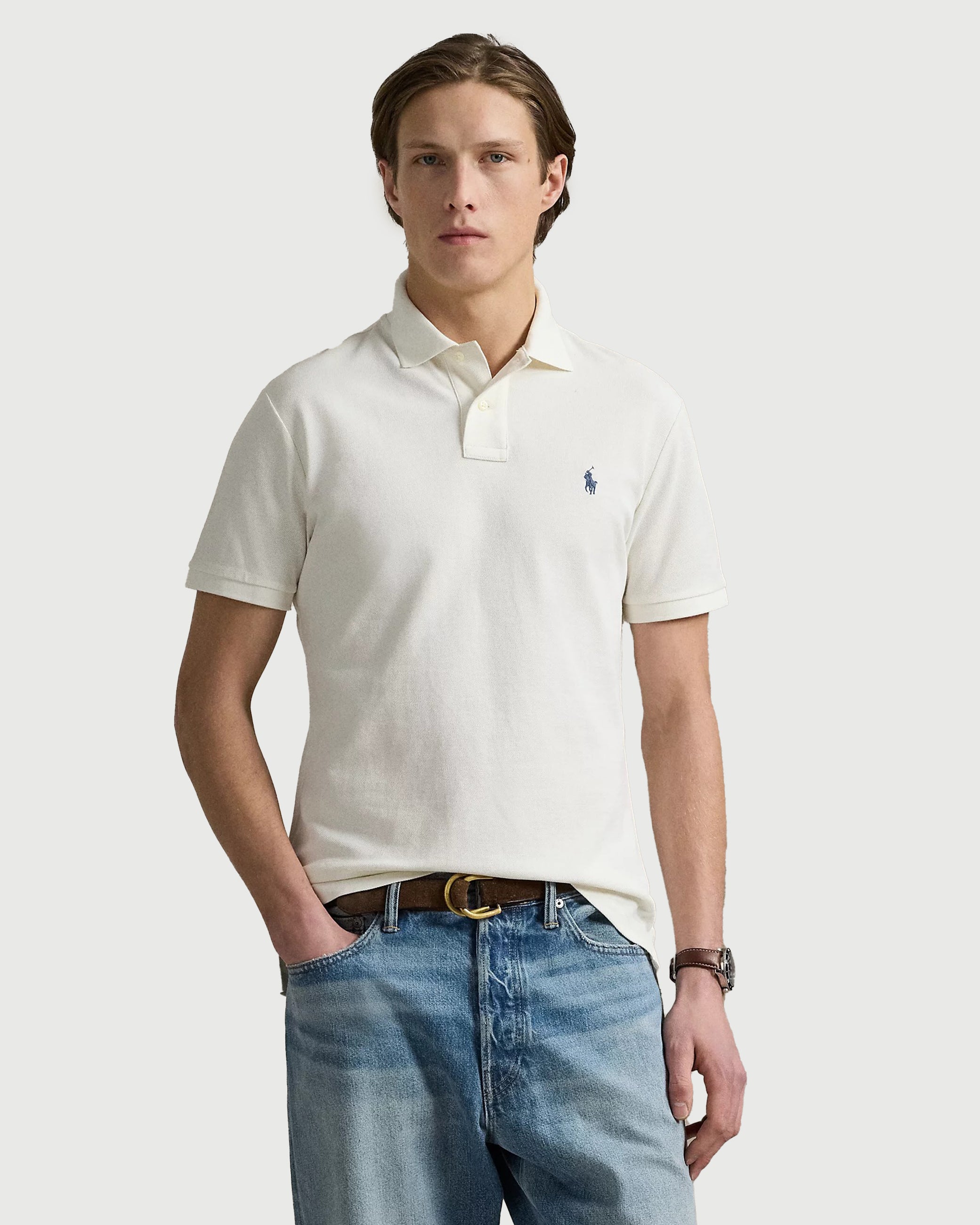 Polo Shirt POLO Ralph Lauren Crema The Iconic Mesh Custom Slim Fit