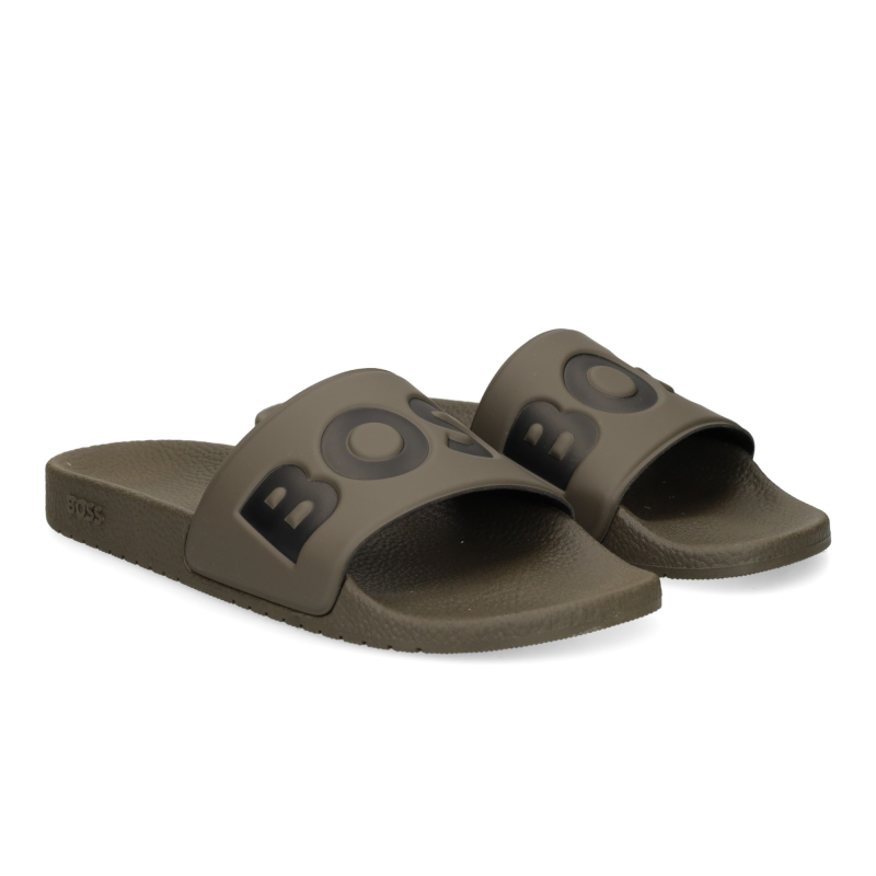 Sandalias exclusivas de BOSS Menswear, fabricadas en Italia. Confeccionadas con materiales ligeros, estas veraniegas sandalias lucen un gran logotipo de BOSS en la parte superior.