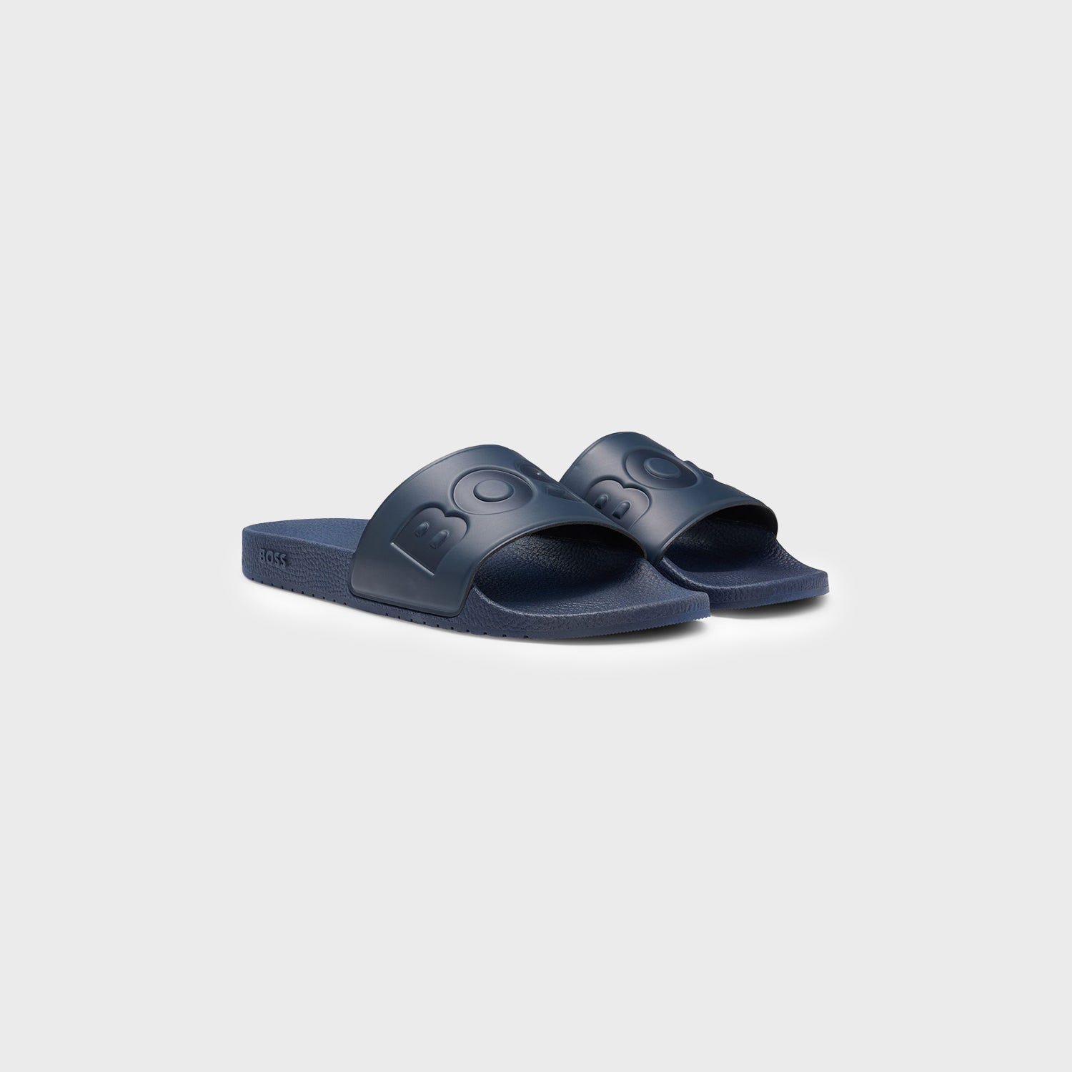 Sandalias exclusivas de BOSS Menswear, fabricadas en Italia. Confeccionadas con materiales ligeros, estas veraniegas sandalias lucen un gran logotipo de BOSS en la parte superior.