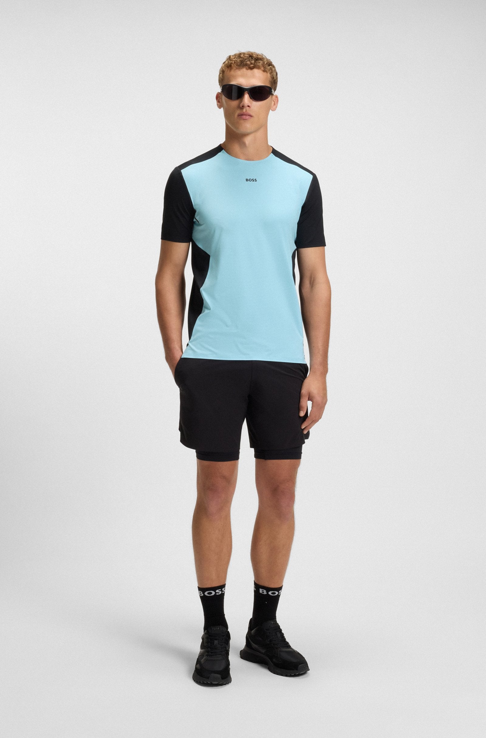 Con perforaciones y sisas flexibles, esta camiseta BOSS Menswear de corte entallado se seca rápidamente y es ligera. Detalles reflectantes decorativos para mayor visibilidad.