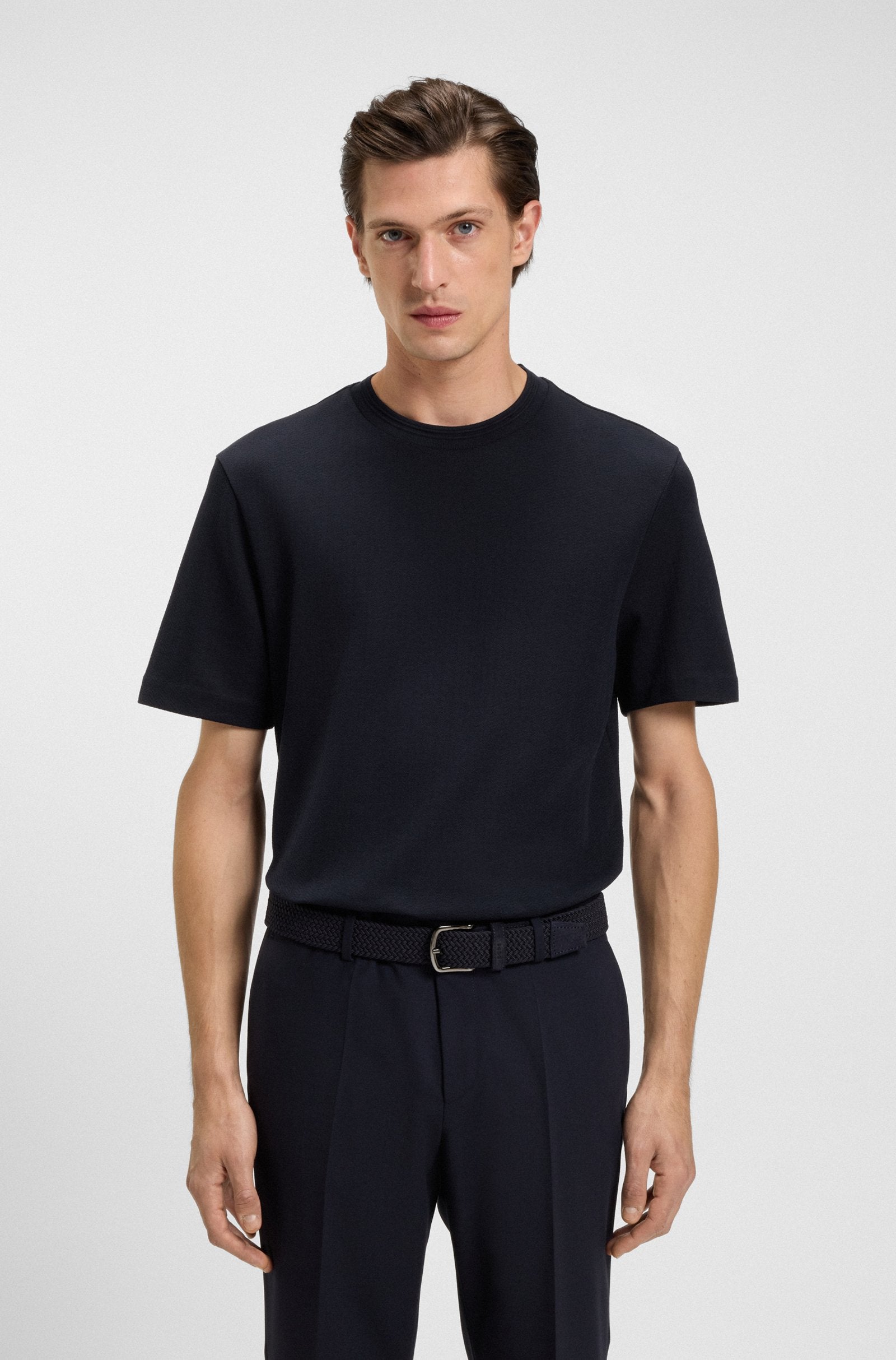 Dale un toque invernal a tu look con el tejido de espiga de esta camiseta de BOSS para hombre. Corte recto en 100 % algodón.