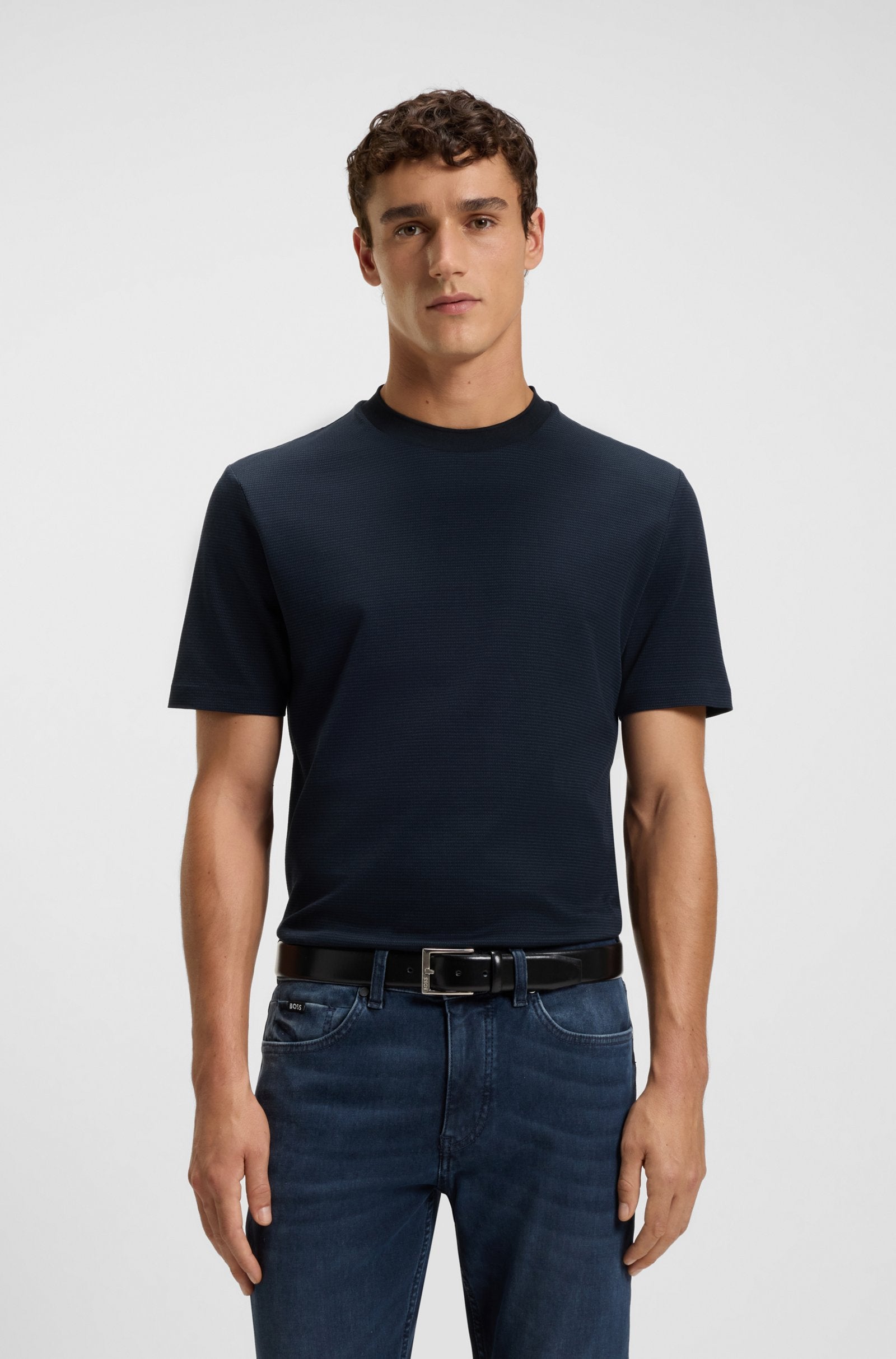 Confeccionada en algodón mercerizado de mayor suavidad, esta camiseta de BOSS para hombre realza tus básicos. Corte recto. Microestampado tricolor con cuello liso.