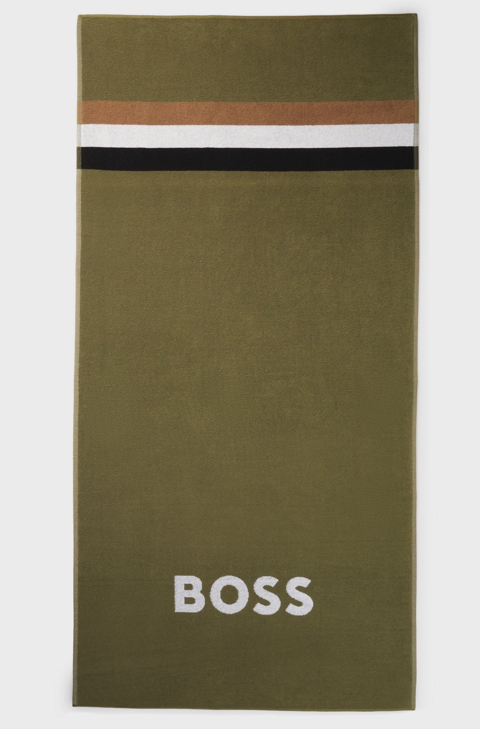 Toalla de playa BOSS Grande de algodón jacquard con logotipo y raya distintiva
