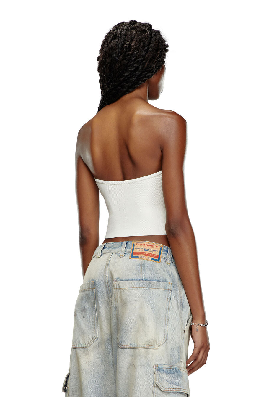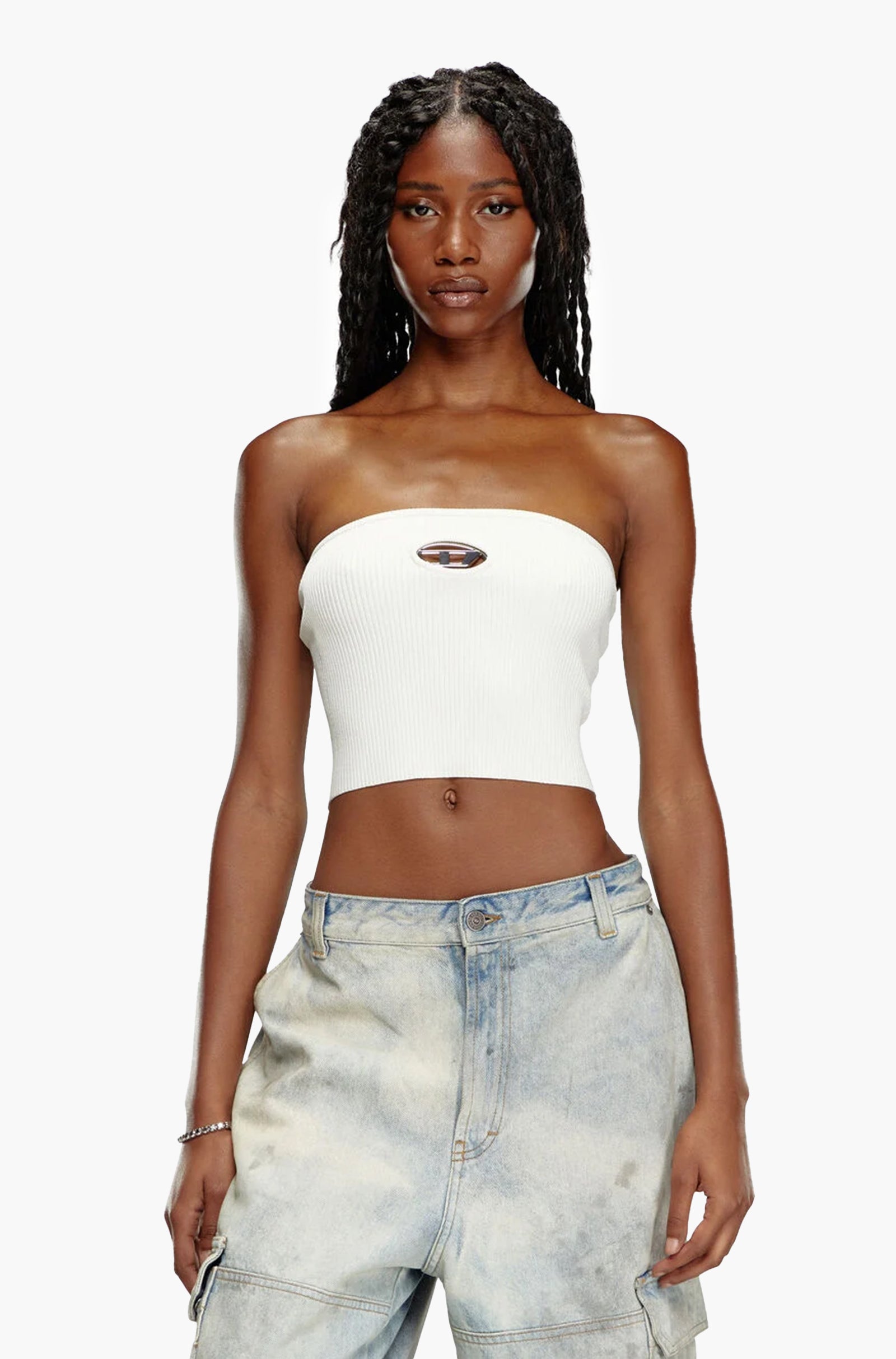 Este top de tubo para mujer presenta una placa metálica con la D ovalada insertada en el escote del pecho que deja ver un poco de piel. Su confección en jersey elástico acanalado garantiza un ajuste suave y ceñido.