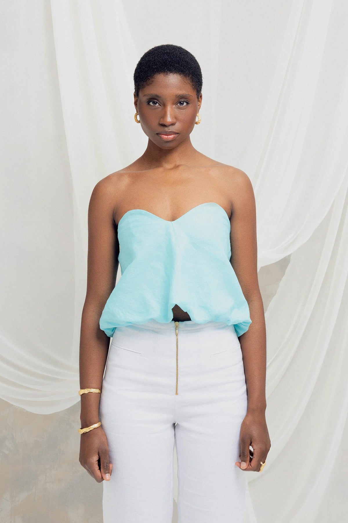Blusa con silueta globo y escote corazón. Una pieza statement romántica que realzará cualquier look.
