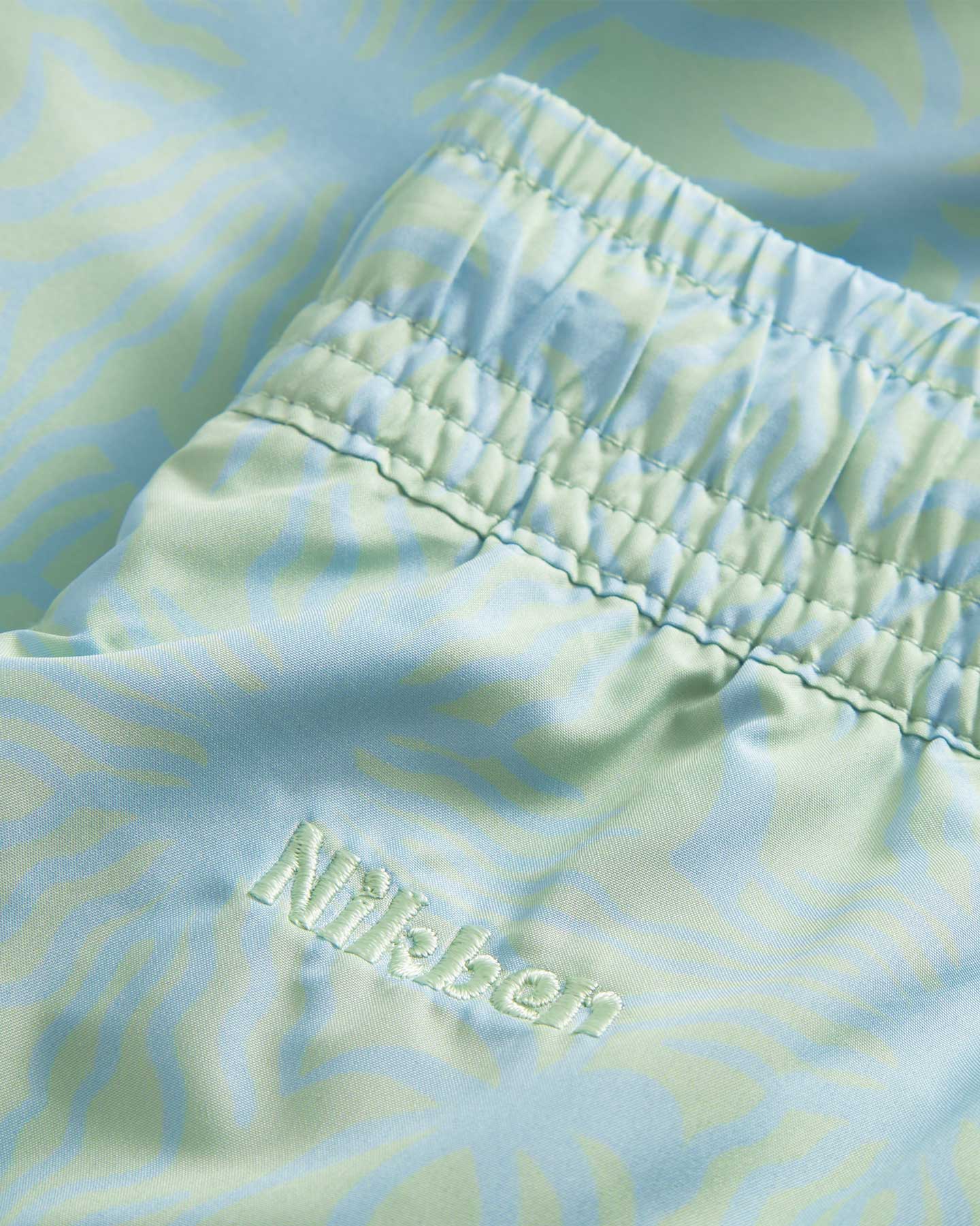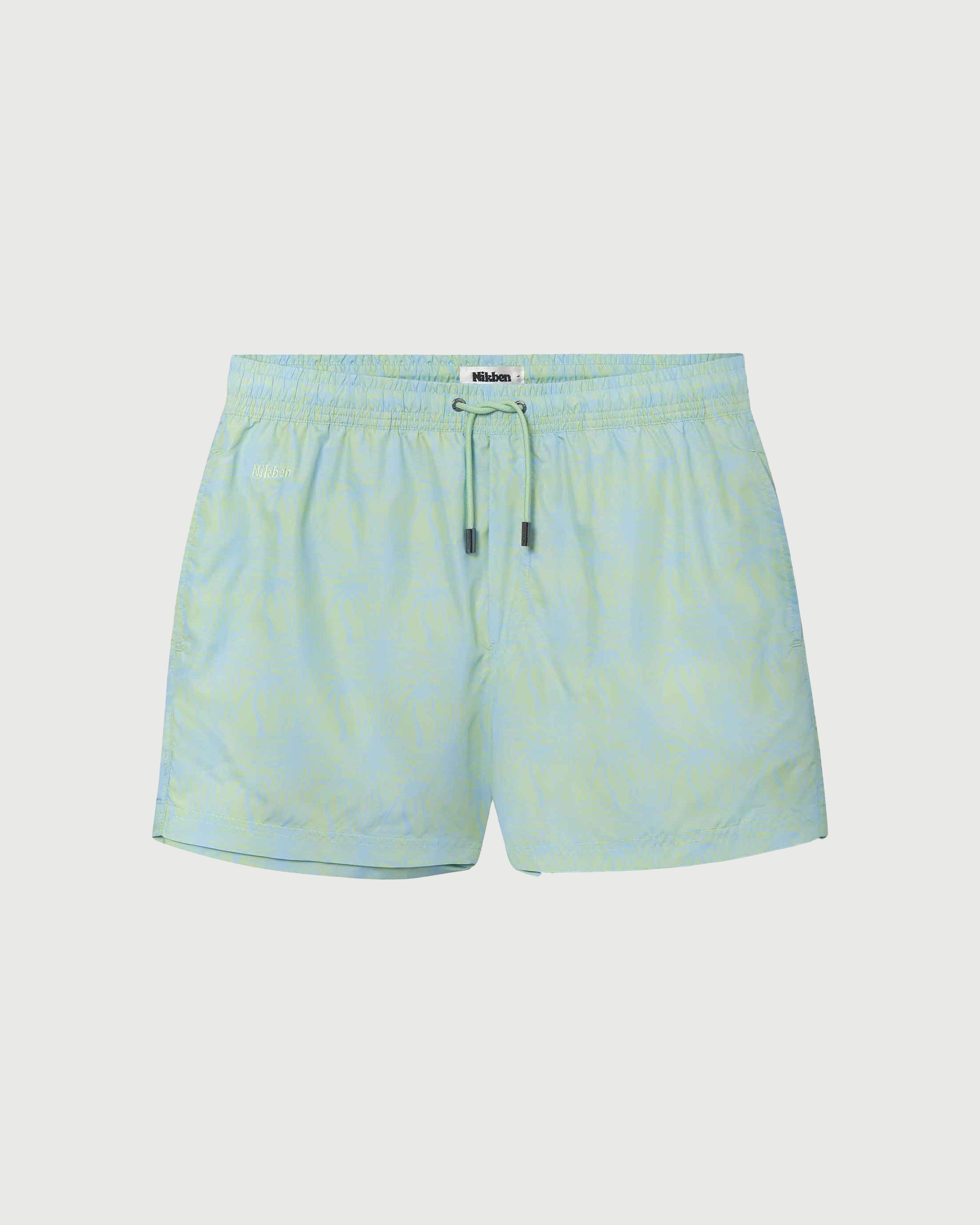 Los bañadores Hermosa están confeccionados con botellas de plástico recicladas (100 % poliéster reciclado) y presentan ilustraciones originales sobre un tejido ligero de secado ultrarrápido. Estos bañadores verde/azul tienen dos bolsillos laterales, un bolsillo trasero con cremallera y un forro de malla fina.